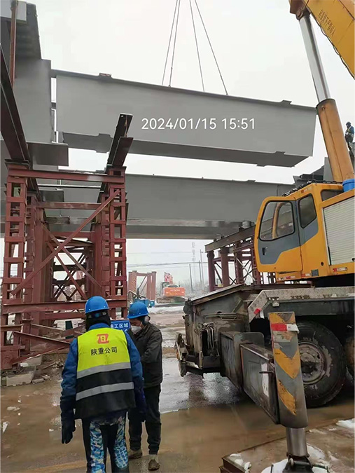 陜西重型機(jī)械制造有限公司承擔(dān)的航站樓出場道路高架橋項目中的400多塊鋼箱梁,其中50%以上的鋼箱梁為新式疊合梁,該疊合梁的結(jié)構(gòu)復(fù)雜程度和單件重量以及多變的外形,為陜重公司的首次加工和安裝,技術(shù)難度大。該項目的參建,對陜重公司鋼結(jié)構(gòu)橋梁的制作和安裝具有劃時代意義。