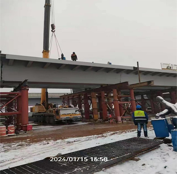 2024年元月15日,西安迎來了冬天的第一場大雪。隨著最后一塊鋼箱梁的精準(zhǔn)吊裝到位,該部分高架橋整體架設(shè)完成并順利合龍!